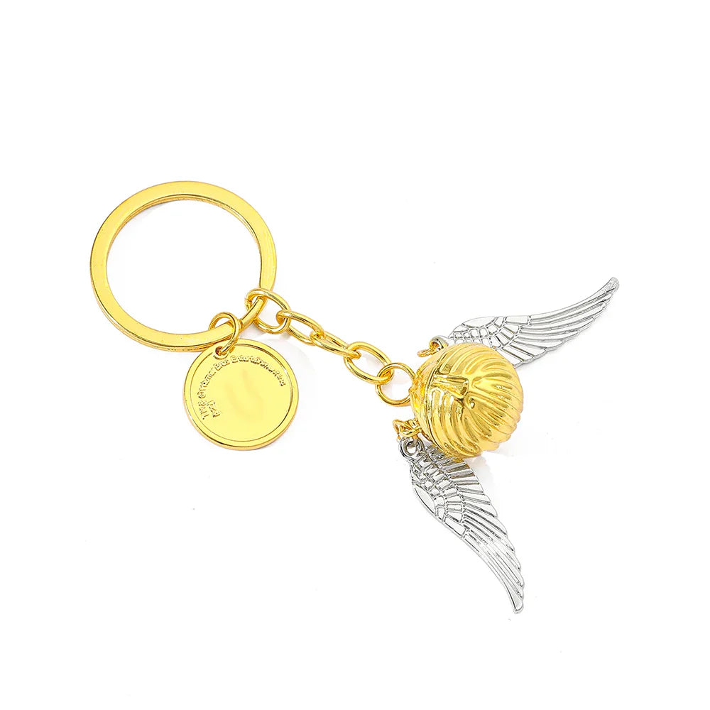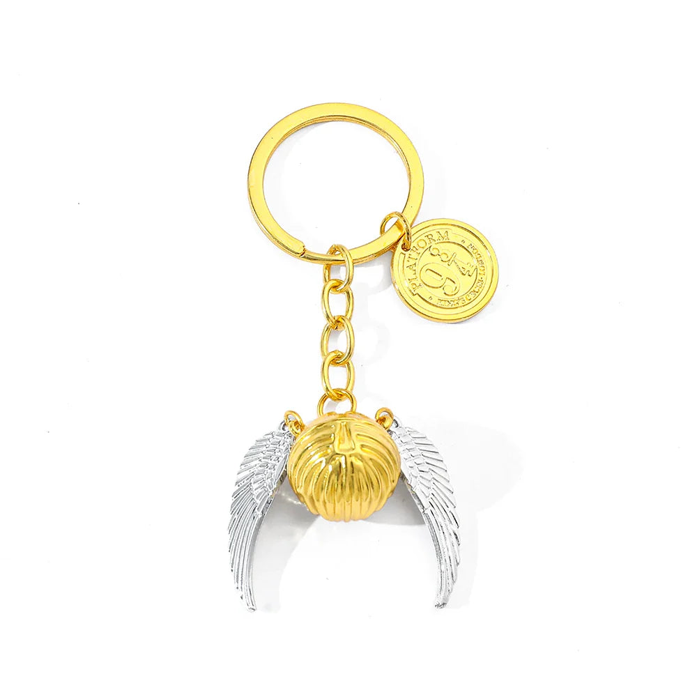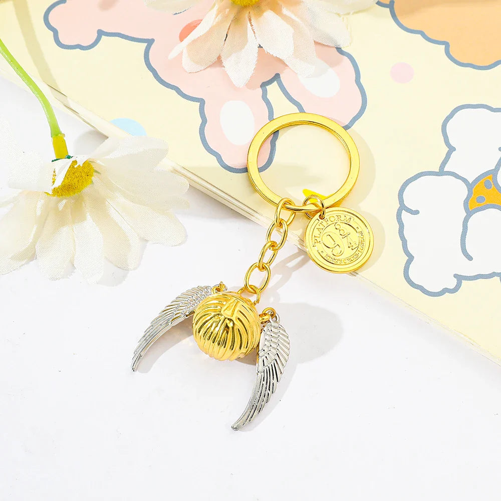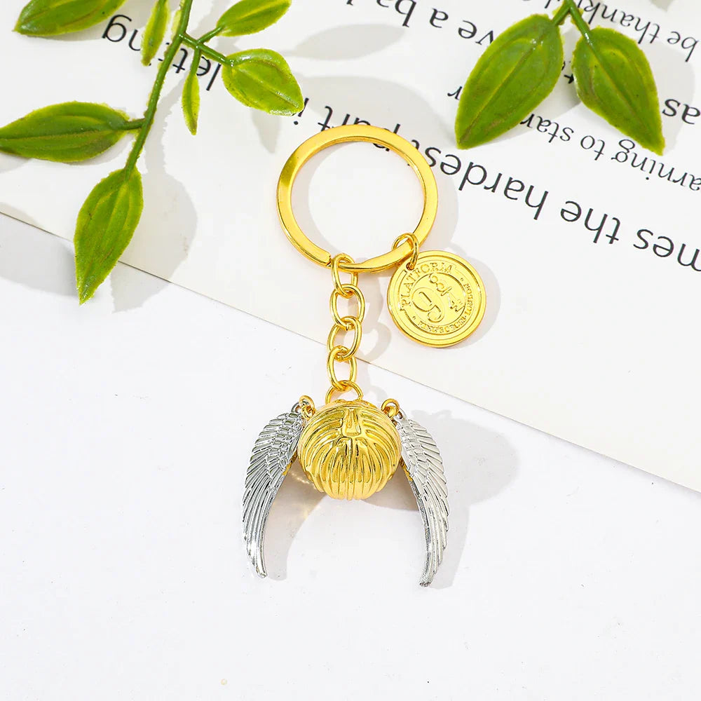 Inspirado nos filmes e livros de Harry Potter, este chaveiro traz o lendário Pomo de Ouro com suas asas prateadas detalhadas, acompanhado de um pingente exclusivo da Plataforma 9¾, um ícone eterno da magia de Hogwarts. Um acessório que une estilo e colecionismo em uma só peça.
