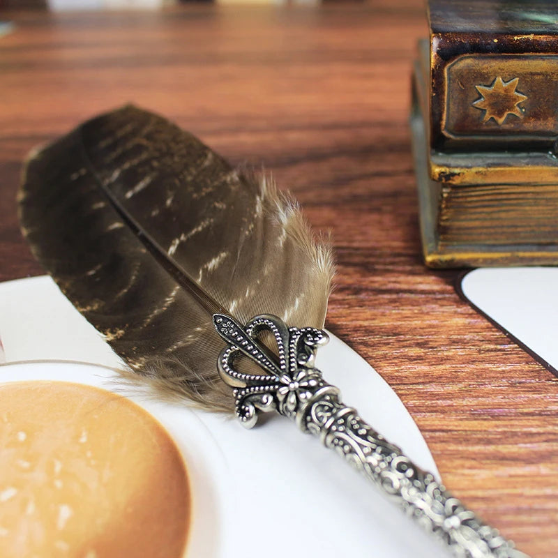 Diretamente dos corredores de Floreios e Borrões, esta Pena de Escrever Tradicional traz a elegância da caligrafia antiga e o encanto dos pergaminhos de Hogwarts. Feita com pena natural, cabo metálico trabalhado e um conjunto de pontas intercambiáveis, é a escolha perfeita para quem deseja viver a verdadeira experiência bruxa de escrita.